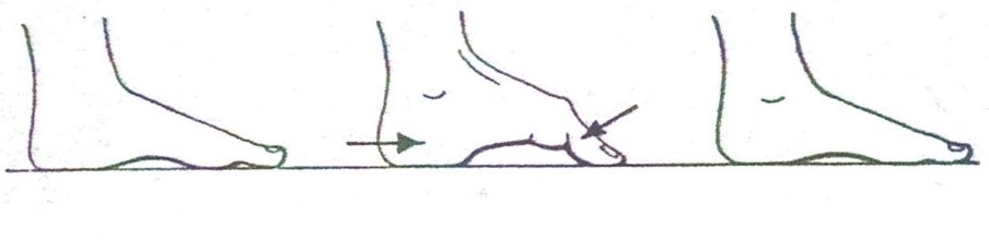 This exercise follows on from number one. Try to “caterpillar” along the carpet by reaching forward with your toes and pressing them into the ground so as to drag the heels forward but don’t let the heels leave the ground . You should be able to move from one side of the room to the other by moving forward with one foot and then the other. Again, try starting with 2 sets of 10 for each foot.