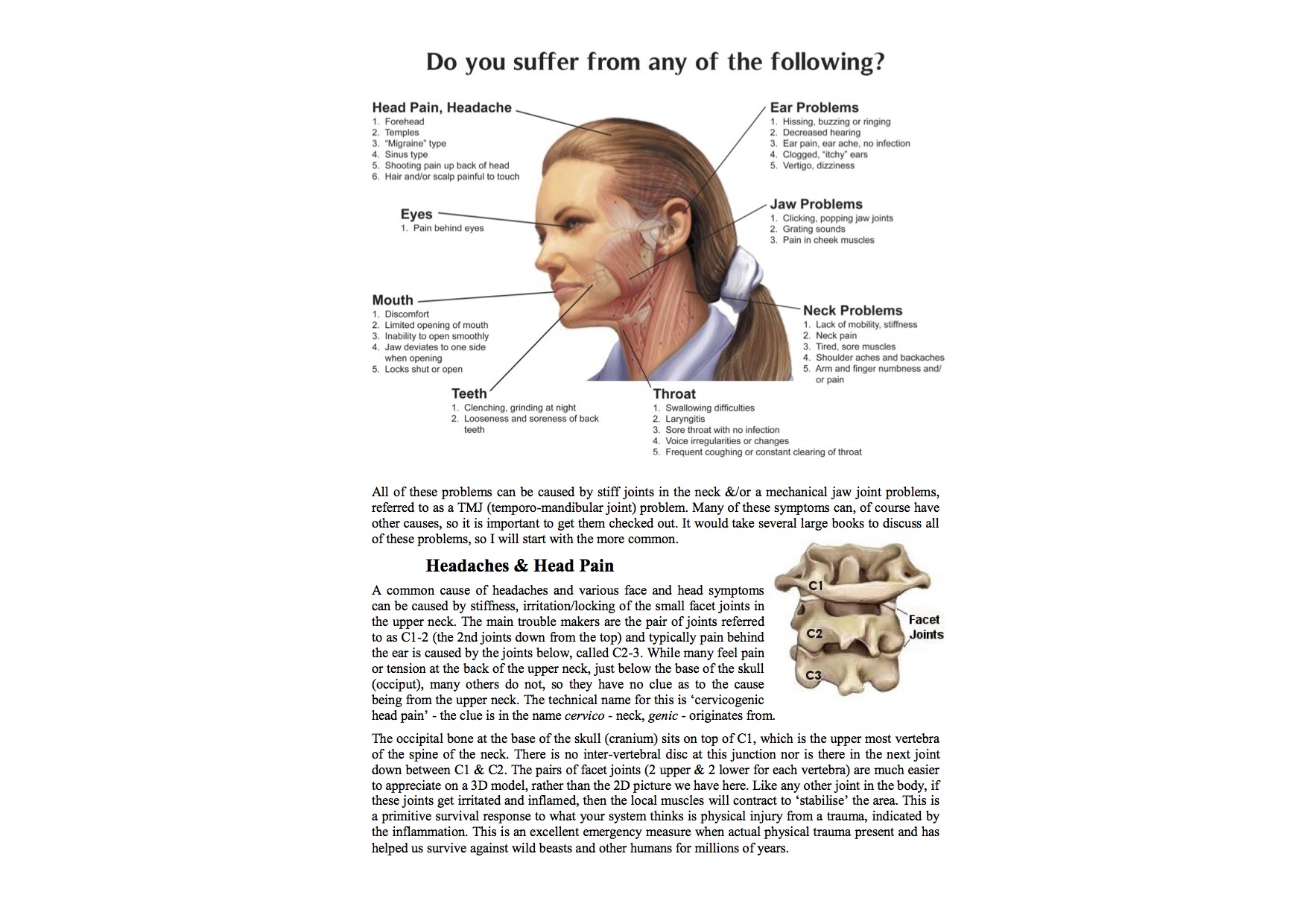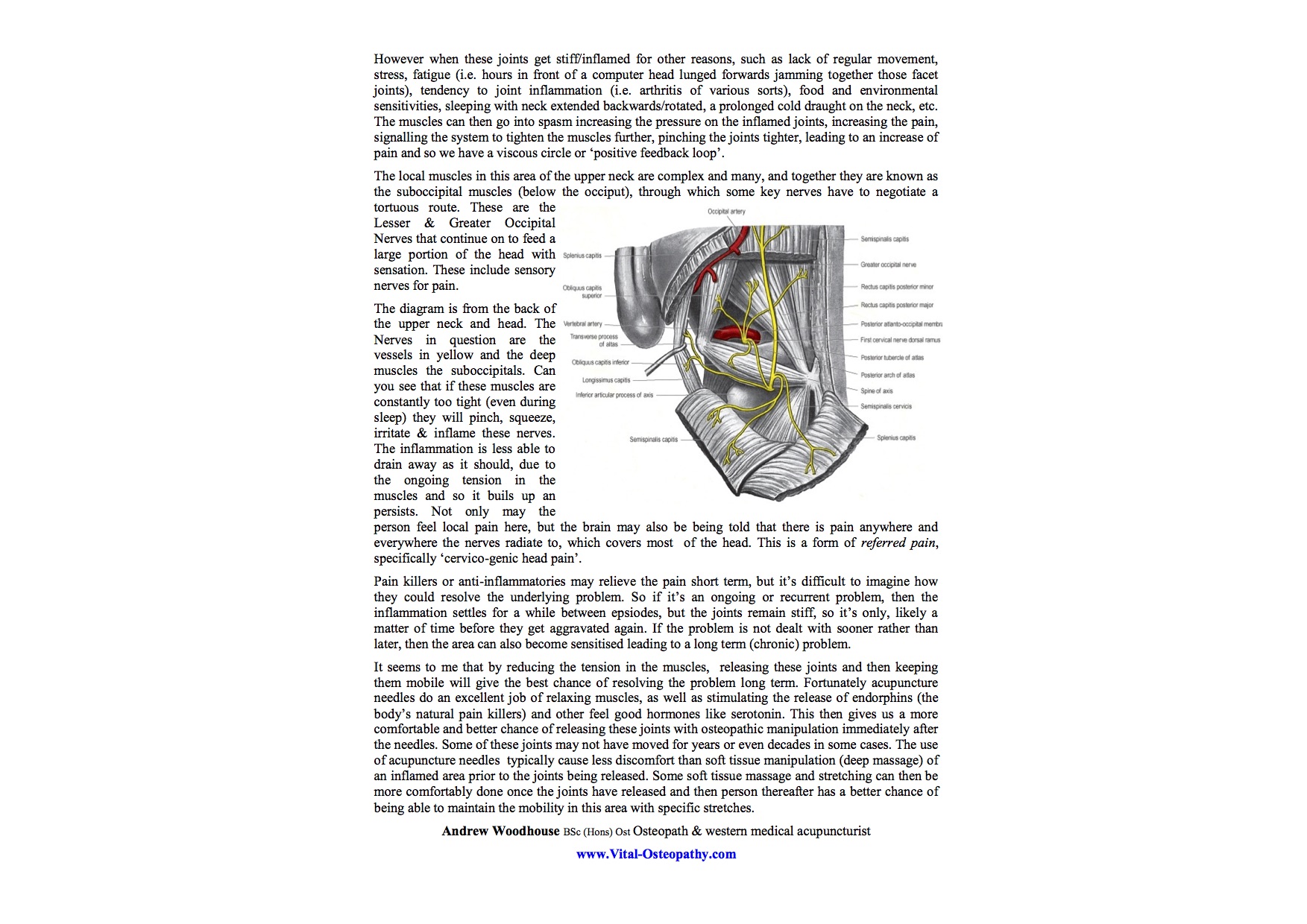Andrew Woodhouse, Osteopath, is only too familiar with this complaint. In his experience he finds that joint stiffness can lead to headaches and head pain. See the infographs below for more information.